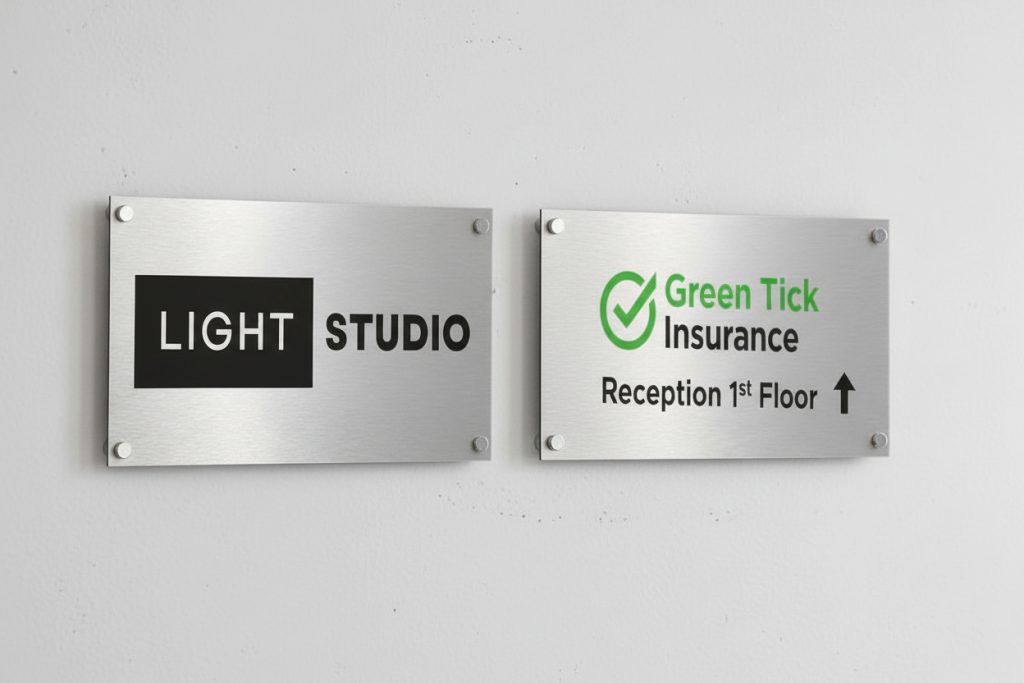Premium Dibond aluminium signage for shop fronts, business branding, and long term outdoor use with a high end finish.