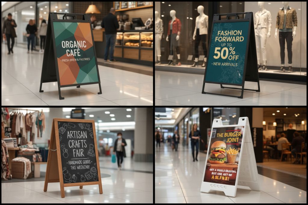 A board and pavement sign printing to attract foot traffic for cafes, restaurants, salons, and retail shops.